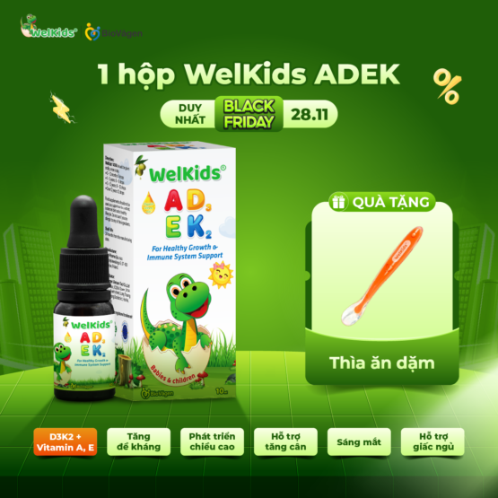 "WelKids® ADEK cung cấp Vitamin A liều chuẩn, đặc biệt phù hợp cho những trẻ chưa được uống Vitamin A trong các chương trình cộng đồng. Mình thấy các mẹ bị quên hoặc đúng đợt đó con ốm hay gia đình có việc nên bị bỏ lỡ, rồi địa phương bị thiếu thuốc nữa này. Nói chung là rất nhiều lý do khiến các mẹ bị động, không cho con uống Vitamin cộng đồng được. Vậy nên với Welkids® ADEK thì mình hoàn toàn có thể chủ động bổ sung đủ liều Vitamin A cho con, đây là ưu điểm cực quan trọng." - Mẹ Dịu Tiên