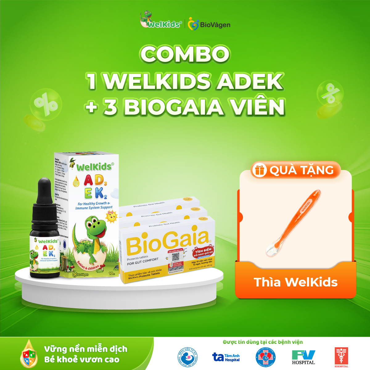 Combo 1 WelKids ADEK + 3 BioGaia viên